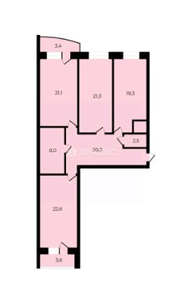3 изолированные спальни (21,1 м2, 22,6 м2, 21,3 м2)