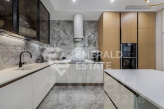 В отделке использованы высококачественные натуральные материалы, в том числе полы из лиственницы, мраморные подоконники. В зоне плитки - везде подогреваемый пол.