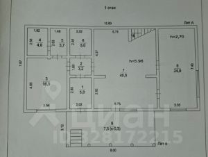 1й этаж: веранда 21 кв.м.; прихожая 5.8 кв.м.; первый совмещённый сан.узел; комната 16.5 кв.м. с двумя кладовками 3.7 и 4.6 кв.м.; кухня-гостиная с лестницей на второй этаж 40.8 кв.м.; комната 24.8 кв.м.