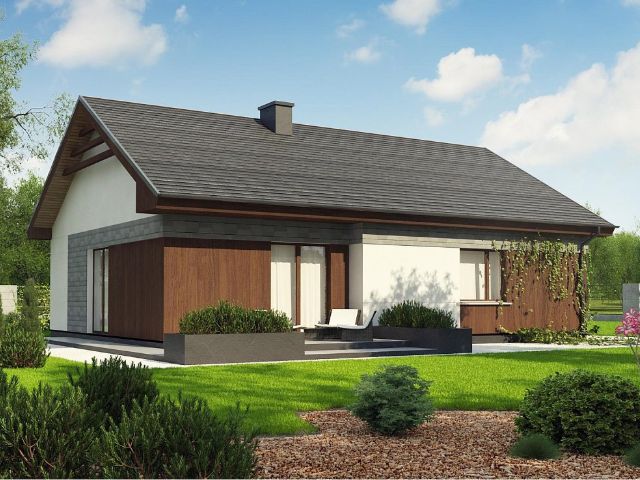 ГБ-93 – проект миниатюрного одноэтажного дома в Европейском стиле, для семьи из трех-четырех человек. Именно такие одноэтажные дома, примером которого является ГБ-93, часто называют одноквартирными. И правда – по размеру такой дом походит на просторную квартиру, но в отличие от квартиры – возводится быстро, и гарантирует тишину из-за отсутствия соседей и возможность чаще бывать на свежем воздухе.