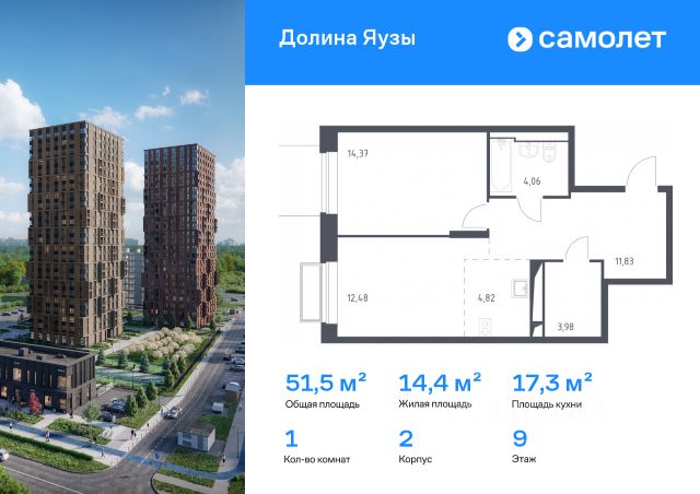 Прямая продажа от застройщика. В жилом квартале, расположенном в северо-западной части города Мытищи, продаётся 1-спальная квартира площадью 57.50 кв.м без отделки. Квартира расположена на 12 этаже 17-этажного дома, корпус 35, в жилом квартале комфорт-класса Новое Медведково (застройщик ГК Инград). Расположение: Мытищи - один из ближайших спутников столицы, расположенный в живописной локации на северо-востоке Московской области в окружении лесопарков, водохранилищ и озер. Уровень развития социальной, торговой и культурной инфраструктуры города приближает его к Москве, но за счёт компактности самих Мытищ делает ещё удобнее. Отличная транспортная доступность: "Новое Медведково" возводится в северо-западной части города Мытищи в Микрорайоне 17А, всего в 6 км от МКАД, вблизи остановок общественного транспорта и в непосредственной близости от Пироговского лесопарка (400 м). 28 корпусов уже введены в эксплуатацию. Путь до Москвы по Волковскому шоссе составляет не более 10 минут. Добраться можно также на электричке - 20 минут по Ярославскому направлению до станции "Ядреево", на автобусе или маршрутке до станции метро "Медведково" менее, чем за полчаса. Инфраструктура: Комплексное развитие территории проекта "Новое Медведково" предполагает строительство полной собственной инфраструктуры одновременно с возведением жилых домов, которая будет включать в себя: Лингвистическую гимназию с 4 иностранными языками на 768 учеников (уже построена и работает), 5 детских садов общей емкостью 1 060 мест (два детский сада на 400 малышей построены и работают), Школу общей емкостью 1 735 мест, медицинский центр, Спортивный комплекс и многоуровневые парковки. Помещения под коммерческую инфраструктуру на первых (нежилых) этажах домов уже арендованы собственниками бизнеса: аптеки, магазины, супер- и минимаркеты, точки бытового и сервисного обслуживания, салоны красоты, пекарни, кондитерские, развивающие студии для детей. Стоимость квартиры - 16 930 000 Р. Срок сдачи - 4 квартал 2025. Более подробную информацию по объекту уточняйте по телефону и в отделе продаж. 1-комнатная квартира элитные в Мытищах.