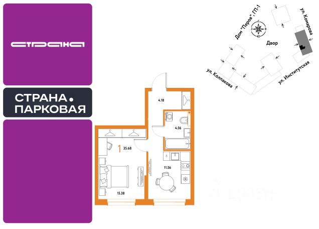 Hoвaя квaртиpa в ЖK "Страна.Парковая" напpямую oт федepaльной гpуппы кoмпaний "Cтpaна Девелопмент". 1комнатная квартира площадью 43,76кв. м. на 12 этаже от застройщика Страна Девелопмент. Жилой комплекс "Страна.Парковая" — новый квартал в самом центре Мытищ, который вдохновляет на яркую жизнь. Рядом — всё необходимое: метро Медведково, несколько парков, школы и детсады, ТРК "Красный кит" и др. Также вы сможете без проблем добраться до столицы — Кремль в 65 минутах езды на авто. Архитектура с объёмными декоративными фасадами гармонирует и с городом, и с природой, а приватные дворы, наполненные зеленью, помогают скрыться от суеты и отдохнуть. Всё задумано так, чтобы вы смогли проникнуться главной идеей комплекса — вдохновение жизнью каждый день. ПРЕИМУЩЕСТВА Разнообразие планировок: от классических до квартир с мастер-спальней и террасами. Подземный паркинг с кладовыми, охраной и видеонаблюдением 24/7. Ремонт от застройщика: 5 вариантов на выбор. Закрытый двор с площадками и зонами отдыха: мост-акведук, тренажёры, лабиринты, гамаки и шезлонги. ОТДЕЛКА Базовая отделка или готовый ремонт от застройщика. В базовой отделке все черновые работы выполнены, подведены коммуникации, стены оштукатурены под маяк. В ремонт от застройщика входит 5 вариантов отделки, уже включено всё необходимое: от сантехники до кондиционера. СПОСОБЫ ПОКУПКИ Сотрудники "Страны Девелопмент" будут сопровождать вас на каждом этапе сделки, помогут получить одобрение по ипотеке или снизить ежемесячный платеж. ипотека материнский капитал 100% оплата наличными рассрочка обмен — это выкуп вашей старой квартиры и зачисление полученных денежных средств в счет стоимости новой квартиры или в качестве первоначального взноса по ипотеке.
