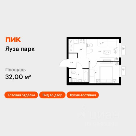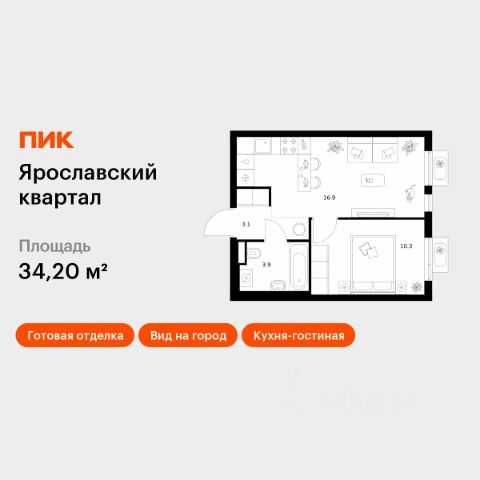 Прямая продажа от девелопера. В жилом квартале, расположенном в северо-западной части города Мытищи, продаётся 1-спальная квартира площадью 43.30 кв.м без отделки. Квартира расположена на 12 этаже 17-этажного дома, корпус 39, в жилом квартале комфорт-класса "Новое Медведково" (девелопер Ingrad). Расположение: Мытищи - один из ближайших спутников столицы, расположенный в живописной локации на северо-востоке Московской области в окружении лесопарков, водохранилищ и озер. Уровень развития социальной, торговой и культурной инфраструктуры города приближает его к Москве, но за счёт компактности самих Мытищ делает ещё удобнее. Отличная транспортная доступность: "Новое Медведково" возводится в северо-западной части города Мытищи в Микрорайоне 17А, всего в 6 км от МКАД, вблизи остановок общественного транспорта и в непосредственной близости от Пироговского лесопарка (400 м). 28 корпусов уже введены в эксплуатацию. Путь до Москвы по Волковскому шоссе составляет не более 10 минут. Добраться можно также на электричке - 20 минут по Ярославскому направлению до станции "Ядреево", на автобусе или маршрутке до станции метро "Медведково" менее, чем за полчаса. Инфраструктура: Комплексное развитие территории проекта "Новое Медведково" предполагает строительство полной собственной инфраструктуры одновременно с возведением жилых домов, которая будет включать в себя: Лингвистическую гимназию с 4 иностранными языками на 768 учеников (уже построена и работает), 5 детских садов общей емкостью 1 060 мест (два детский сада на 400 малышей построены и работают), Школу общей емкостью 1 735 мест, медицинский центр, Спортивный комплекс и многоуровневые парковки. Помещения под коммерческую инфраструктуру на первых (нежилых) этажах домов уже арендованы собственниками бизнеса: аптеки, магазины, супер- и минимаркеты, точки бытового и сервисного обслуживания, салоны красоты, пекарни, кондитерские, развивающие студии для детей.