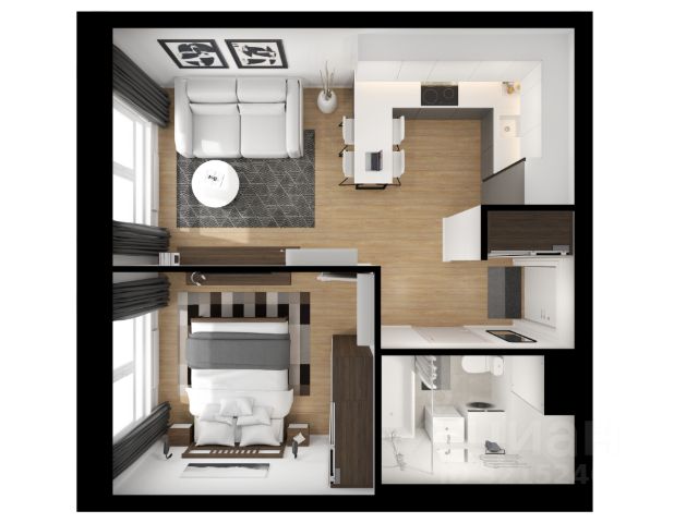 Современная светлая и чистая квартира площадью 33,8 м расположена на 6-м этаже 16-этажного монолитного дома. В квартире - изолированная уютная спальня (жилая площадь - 10.1м), с у становленным кондиционером, кухня-гостиная (площадь кухни - 13,4 м) и совмещённый санузел.