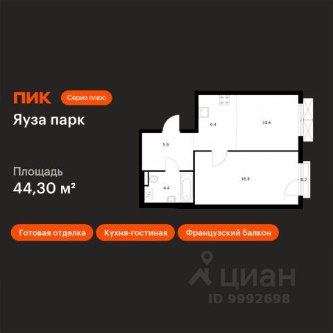 Продаётся 1-комн. квартира площадью 44,3 кв.м на 4 этаже 24 этажного дома (Корпус 7, Секция 1) проекта ПИК Яуза парк. Светлый просторный подъезд на уровне земли, функциональная планировка, большие окна, c отделкой. Жилой квартал "Яуза парк" возводится в Мытищах, в 5 минутах ходьбы от одноимённой ж/д станции. Проект включает 20 домов разной этажности с благоустроенными дворами-парками. Сейчас в квартале началось строительство новых корпусов 7-12. Это отличная возможность купить квартиру по стартовой цене. Индивидуальный дизайн фасадов разработали архитектурные бюро KATARSIS и RHIZOME. Вблизи жилого квартала появятся шумопоглощающие экраны, позволяющие забыть о том, что неподалёку находятся железнодорожные пути. На первых этажах домов откроются магазины, кафе, салоны красоты и другие полезные сервисы. Рядом есть школы и детские сады, магазины и ТРЦ "Красный кит". На территории проекта появится благоустроенная набережная реки Яузы и пешеходный бульвар для прогулок всей семьёй. Водонапорную башню XIX века, расположенную на территории "Яуза парка", мы реставрируем и создадим вокруг неё общественное пространство для отдыха жителей квартала. Для прогулок отлично подойдёт Мытищинский центральный парк культуры и отдыха, расположенный в 10 минутах ходьбы, и Лосиный остров — в 24 минутах. Дорога на автомобиле до Ярославского шоссе займёт не более 3 минут, до МКАД — 10 минут. Артикул 995923 (Застройщик ООО "Специализированный "НМ-Консалт")
