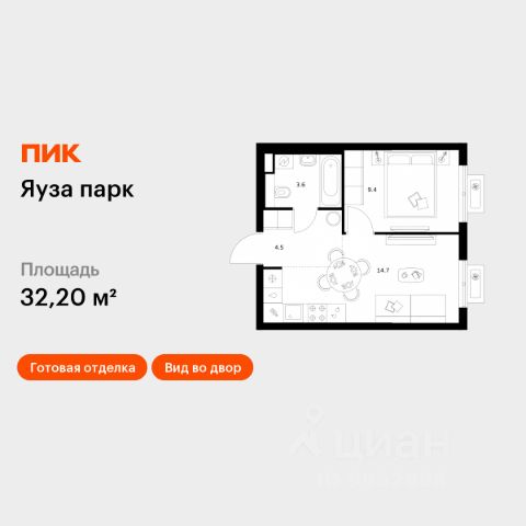 Продаётся 1-комн. квартира площадью 32,2 кв.м на 4 этаже 24 этажного дома (Корпус 15, Секция 1) проекта ПИК Яуза парк. Светлый просторный подъезд на уровне земли, функциональная планировка, большие окна, c отделкой. Жилой квартал "Яуза парк" возводится в Мытищах, в 5 минутах ходьбы от одноимённой ж/д станции. Проект включает 20 домов разной этажности с благоустроенными дворами-парками. Сейчас в квартале началось строительство новых корпусов 7-12. Это отличная возможность купить квартиру по стартовой цене. Вблизи жилого квартала появятся шумопоглощающие экраны, позволяющие забыть о том, что неподалёку находятся железнодорожные пути. На первых этажах домов откроются магазины, кафе, салоны красоты и другие полезные сервисы. Рядом есть школы и детские сады, магазины и ТРЦ "Красный кит". На территории проекта появится благоустроенная набережная реки Яузы и пешеходный бульвар для прогулок всей семьёй. Водонапорную башню XIX века, расположенную на территории "Яуза парка", мы реставрируем и создадим вокруг неё общественное пространство для отдыха жителей квартала. Для прогулок отлично подойдёт Мытищинский центральный парк культуры и отдыха, расположенный в 10 минутах ходьбы, и Лосиный остров — в 24 минутах. Дорога на автомобиле до Ярославского шоссе займёт не более 3 минут, до МКАД — 10 минут. Артикул 1067829 (Застройщик ООО "Специализированный "НМ-Консалт")