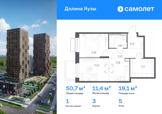 Строим кварталы для жизни с заботой о будущем. Предлагается 1-комнатная квартира комфорт-класса 53,9 кв.м в корпусе 2 на 5 этаже, в ЖК "Долина Яузы" Квартира с чистовой отделкой. Доступность дополнительных опций уточняйте у застройщика. Приобрести квартиру возможно по специальным акциям от застройщика, с текущими условиями акций можно ознакомиться в блоке "Акций". Цена динамическая и может отличаться, уточняйте актуальность у застройщика. Жилой комплекс комфорт-класса "Долина Яузы" расположен на северо-востоке Московской области, в 200 м от МКАД. До ж/д станции Перловская или набережной реки Яуза можно дойти за 10 минут. В шаговой доступности находятся детские сады, школы, стоматология и поликлиника. Есть супермаркеты и кофейни, детские и спортивные площадки, зоны отдыха под навесом. У каждого дома будет собственный двор-сад, где посадят плодовые и вечнозеленые деревья и кустарники. Территория около жилого комплекса закрыта от машин и посторонних и круглосуточно охраняется. В жилом комплексе "Долина Яузы" большой выбор квартир: от однокомнатных до трехкомнатных. Квартиры сдаются с готовой отделкой или без нее.
