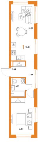 Обратите внимание, что цена подразумевает продажу данной квартиры без мебели, которую вы видите на фото (покупателю остаются встроенный шкаф, гардеробная и кровать с ортопедическим матрасом, изготовленная под размеры зоны спальни). Всю остальную мебель (включая кухонный гарнитур) продавец забирает с собой в новую квартиру. По запросу Покупателя кухня может быть оборудована электроплитой и раковиной.