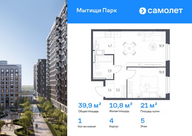 Лот 48252644. Продаётся УЮТНАЯ однокомнатная квартира 33,8 кв.м., с РЕМОНТОМ, с современной мебелью и всей необходимой техникой, на 13-м этаже в новом жилом комплексе комфорт-класса "Мытищи парк".