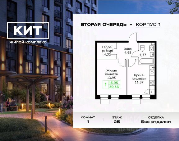 Продаётся 1-к квартира 39.68 кв.м. без отделки в ЖК "КИТ2" на 25-м этаже 25 этажного дома.Жилой комплекс "Кит 2" спроектирован в урбанистической концепции "Город в Городе". Объект бизнес-класса предлагает рациональный подход к набору опций, необходимых для гармоничной жизни. Проект представляет собой два корпуса, которые образуют единую приватную территорию. Ее доминантой является двор с красивым ландшафтным дизайном и различными зонами, ориентированными на интересы жителей разного возраста. При создании пространства в приоритет ставился комфорт жителей. В шаговой доступности находятся: торговый центр, рестораны, кинотеатры, спортивный зал, образовательные учреждения и множество других объектов в сфере услуг. Преимущества проекта: - 3 корпуса для приватной жизни - Видовые характеристики (просматриваются Москва - Сити и Останкинская телебашня) - Широкая квартирография по всем типам квартир - Увеличенное остекление - 3 варианта отделки: БОРДО, СТОКГОЛЬМ, ОСЛО - Богатая развлекательная инфраструктура - Высокий уровень безопасности территории Расположение комплекса: - 2,2 км до Волковского шоссе - 2,8 км до Ярославского шоссе - 5,7 км до МКАД - 5 минут пешком до ж/д станции "Мытищи" и Автовокзала - 18 минут до станции метро "Комсомольская" - 30 минут до станции метро "Медведково"