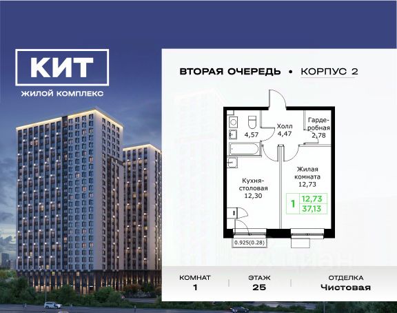 Дом сдан. Выдаем ключи! Продаётся 1-к квартира 39.6 кв.м. с чистовой отделкой в ЖК "КИТ" на 9-м этаже 25 этажного дома. Жилой комплекс "Кит" спроектирован в урбанистической концепции "Город в Городе". Объект бизнес-класса предлагает рациональный подход к набору опций, необходимых для гармоничной жизни. Проект представляет собой два корпуса, которые образуют единую приватную территорию. Ее доминантой является двор с красивым ландшафтным дизайном и различными зонами, ориентированными на интересы жителей разного возраста. При создании пространства в приоритет ставился комфорт жителей. В шаговой доступности находятся торговый центр, рестораны, кинотеатры, спортивный зал, образовательные учреждения и много других сфер услуг. Преимущества проекта: - Видовые характеристики (просматриваются Москва - Сити и Останкинская телебашня) - Широкая квартирография по всем типам квартир - Увеличенное остекление - 3 варианта отделки: без отделки, white box или чистовая отделка в скандинавском и итальянском стилях - Школа и детский сад рядом - Богатая развлекательная инфраструктура - Высокий уровень безопасности территории Расположение комплекса: - 5 минут пешком до ж/д "Мытищи" и автовокзала: - 19 минут до станции м. "Комсомольская" - 30 минут до станции м. "Медведково" - 2,2 км до Волковского шоссе - 2,8 км до Ярославского шоссе - 5,7 км до МКАД Продам 1-комнатную квартиру с отделкой в Мытищах.