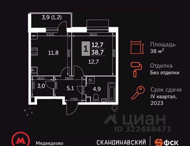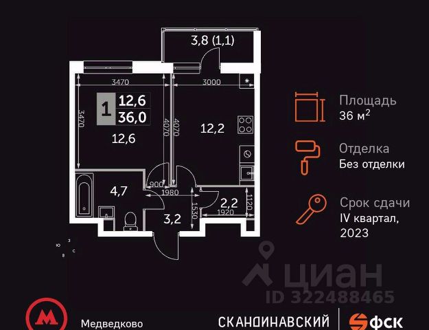 Продаётся однокомнатная квартира в сданном доме (Корпус 6), корпус сдан, общей площадью 36 кв.м., на 5 этаже.