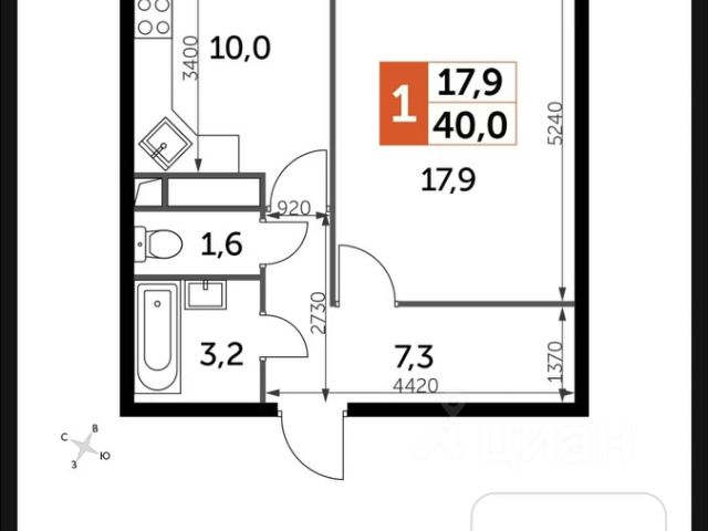 • ✓ В базе Циан 9 1-комнатных квартир.