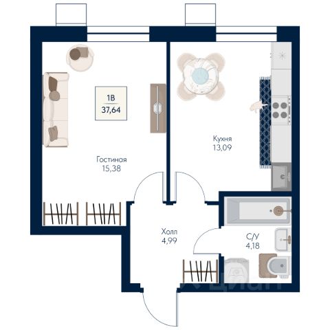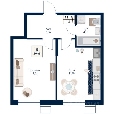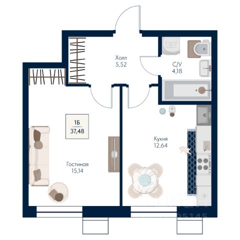 Продаётся 1-комнатная квартира в строящемся доме (Секции 1-5), срок сдачи: III-кв. 2028, общей площадью 37.05 кв.м., на 3 этаже. Новый жилой комплекс "Бархат" от застройщика "СЗ Глобалмытищи" расположен по адресу: г. Мытищи, Ядреевская улица.