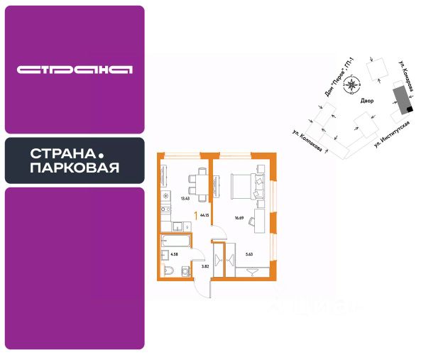 Рассрочка 0% с первым взносом от 20%, ипотека с субсидией или наличные. Подберём способ оплаты индивидуально. Покупайте квартиру сейчас — заезжайте уже в следующем году! Продается 1комнатная квартира на 11 этаже от застройщика Страна Девелопмент. Площадь квартиры 43.13 кв. м. Жилой комплекс ЖК "Страна.Парковая" строится в самом центре Мытищ в 15 мин. пешком от парков Мира и Яузы. Внутри квартала — детский сад, приватные дворы, стрит-ритейл на первом этаже, множество мини-парков и прогулочный мост-акведук. За 15 мин. вы сможете дойти до ж/д станции Мытищи, за 20 мин. на авто доехать до метро "Медведково" и ВДНХ. ПРЕИМУЩЕСТВА Закрытые дворы. Видеонаблюдение 24/7, доступ по системе контроля, отдельные въезды для спецтехники. Планировки под любой жизненный сценарий — от компактных студий до евро-3 с террасой; Благоустройство территории. Несколько парков, спортивные и детские площадки, амфитеатр с гамаками и шезлонгами и др. Тёплый паркинг. Видеоконтроль, лифт до нужного этажа, стандартные и семейные места. Лобби с коворкингом. Здесь можно подождать такси на мягком диване или даже поработать за столом. Дизайнерская отделка При покупке квартиры в ЖК "Страна.Парковая" можно приобрести ремонт от застройщика. 4 стиля отделки для ванной и 5 вариантов для остальных комнат — на выбор. Кухня от застройщика Одна из удобных опций от Страны — приобретение кухни в ипотеку при покупке опции "Ремонт". Доступно 4 стиля на выбор: дерево, керамика, мрамор, бетон. Умный дом Функция "Умный дом" позволит перейти на новый уровень комфорта. Управляйте светом в квартире с помощью голоса, получайте информацию о ситуации в квартире, находясь на работе или в отпуске. СПОСОБЫ ПОКУПКИ Сотрудники "Страна Девелопмент" будут сопровождать вас на каждом этапе сделки, помогут получить одобрение по ипотеке или снизить ежемесячный платеж. Доступны гибкие варианты оплаты: - ипотека (стандартная/с субсидией/траншевая) - рассрочка (с ПВ от 20%) - с использованием материнского капитала - оплата наличными
