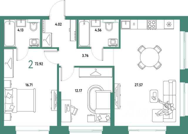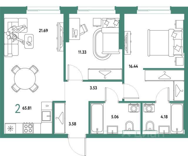 Продаётся 2-комнатная квартира в строящемся доме (Дом 2), срок сдачи: IV-кв. 2027, общей площадью 58.58 кв.м., на 14 этаже. Многоэтажные жилые дома с объектами инфраструктуры, расположенные по адресу: Московская область, г.о. Мытищи, г.Мытищи, мкр. 18Б, ул. Комарова.