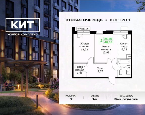 Продаётся 2-к квартира 53.03 кв.м. без отделки в ЖК "КИТ2" на 14-м этаже 25 этажного дома.Жилой комплекс "Кит 2" спроектирован в урбанистической концепции "Город в Городе". Объект бизнес-класса предлагает рациональный подход к набору опций, необходимых для гармоничной жизни. Проект представляет собой два корпуса, которые образуют единую приватную территорию. Ее доминантой является двор с красивым ландшафтным дизайном и различными зонами, ориентированными на интересы жителей разного возраста. При создании пространства в приоритет ставился комфорт жителей. В шаговой доступности находятся: торговый центр, рестораны, кинотеатры, спортивный зал, образовательные учреждения и множество других объектов в сфере услуг. Преимущества проекта: - 3 корпуса для приватной жизни - Видовые характеристики (просматриваются Москва - Сити и Останкинская телебашня) - Широкая квартирография по всем типам квартир - Увеличенное остекление - 3 варианта отделки: БОРДО, СТОКГОЛЬМ, ОСЛО - Богатая развлекательная инфраструктура - Высокий уровень безопасности территории Расположение комплекса: - 2,2 км до Волковского шоссе - 2,8 км до Ярославского шоссе - 5,7 км до МКАД - 5 минут пешком до ж/д станции "Мытищи" и Автовокзала - 18 минут до станции метро "Комсомольская" - 30 минут до станции метро "Медведково"