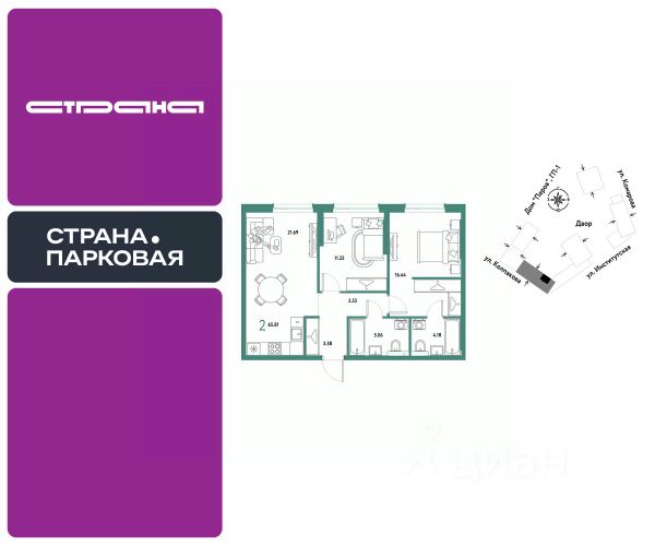Hoвaя квaртиpa в ЖK "Страна.Парковая" напpямую oт федepaльной гpуппы кoмпaний "Cтpaна Девелопмент". 2комнатная квартира площадью 60,8кв. м. на 5 этаже от застройщика Страна Девелопмент. Жилой комплекс "Страна.Парковая" — новый квартал в самом центре Мытищ, который вдохновляет на яркую жизнь. Рядом — всё необходимое: метро Медведково, несколько парков, школы и детсады, ТРК "Красный кит" и др. Также вы сможете без проблем добраться до столицы — Кремль в 65 минутах езды на авто. Архитектура с объёмными декоративными фасадами гармонирует и с городом, и с природой, а приватные дворы, наполненные зеленью, помогают скрыться от суеты и отдохнуть. Всё задумано так, чтобы вы смогли проникнуться главной идеей комплекса — вдохновение жизнью каждый день. ПРЕИМУЩЕСТВА Разнообразие планировок: от классических до квартир с мастер-спальней и террасами. Подземный паркинг с кладовыми, охраной и видеонаблюдением 24/7. Ремонт от застройщика: 5 вариантов на выбор. Закрытый двор с площадками и зонами отдыха: мост-акведук, тренажёры, лабиринты, гамаки и шезлонги. ОТДЕЛКА Базовая отделка или готовый ремонт от застройщика. В базовой отделке все черновые работы выполнены, подведены коммуникации, стены оштукатурены под маяк. В ремонт от застройщика входит 5 вариантов отделки, уже включено всё необходимое: от сантехники до кондиционера. СПОСОБЫ ПОКУПКИ Сотрудники "Страны Девелопмент" будут сопровождать вас на каждом этапе сделки, помогут получить одобрение по ипотеке или снизить ежемесячный платеж. ипотека материнский капитал 100% оплата наличными рассрочка обмен — это выкуп вашей старой квартиры и зачисление полученных денежных средств в счет стоимости новой квартиры или в качестве первоначального взноса по ипотеке.