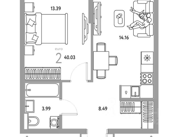 Самая востребованная планировка - просторная кухня 11 м2 с выходом на остекленную лоджию, вместительная гардеробная, совмещенный с/у и 2 светлые комнаты по 13,5 м2 с увеличенными окнами, выходящими на разные стороны.