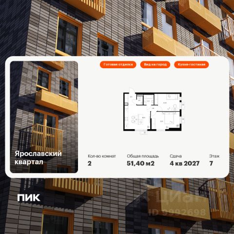 Продаётся 2-комн. квартира площадью 51,5 кв.м на 7 этаже 24 этажного дома (Корпус 5, Секция 1) проекта ПИК Яуза парк. Светлый просторный подъезд на уровне земли, функциональная планировка, большие окна, c отделкой. Жилой квартал "Яуза парк" возводится в Мытищах, в 5 минутах ходьбы от одноимённой ж/д станции. Проект включает 20 домов разной этажности с благоустроенными дворами-парками. Сейчас в квартале началось строительство новых корпусов 7-12. Это отличная возможность купить квартиру по стартовой цене. Индивидуальный дизайн фасадов разработали архитектурные бюро KATARSIS и RHIZOME. Вблизи жилого квартала появятся шумопоглощающие экраны, позволяющие забыть о том, что неподалёку находятся железнодорожные пути. На первых этажах домов откроются магазины, кафе, салоны красоты и другие полезные сервисы. Рядом есть школы и детские сады, магазины и ТРЦ "Красный кит". На территории проекта появится благоустроенная набережная реки Яузы и пешеходный бульвар для прогулок всей семьёй. Водонапорную башню XIX века, расположенную на территории "Яуза парка", мы реставрируем и создадим вокруг неё общественное пространство для отдыха жителей квартала. Для прогулок отлично подойдёт Мытищинский центральный парк культуры и отдыха, расположенный в 10 минутах ходьбы, и Лосиный остров — в 24 минутах. Дорога на автомобиле до Ярославского шоссе займёт не более 3 минут, до МКАД — 10 минут. Артикул 940361 (Застройщик ООО "Специализированный "НМ-Консалт")