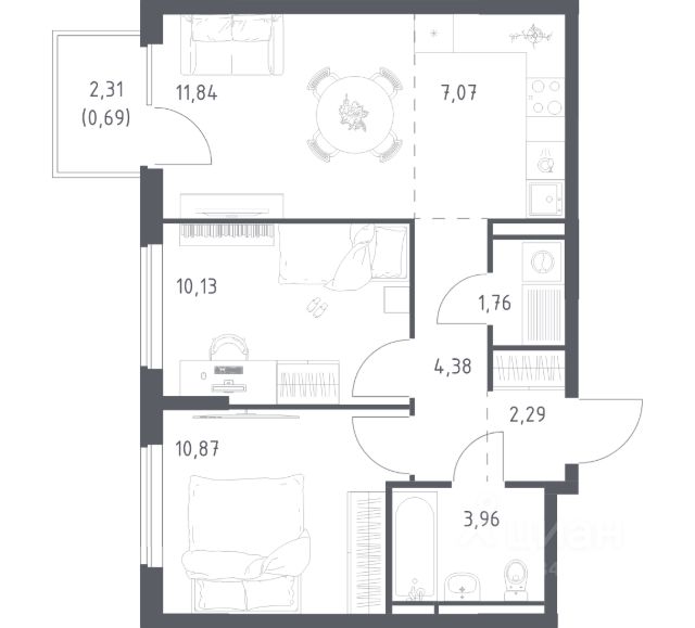 Продаётся 2-комнатная квартира 415, площадью 55,29 м², на 7 этаже в ЖК "Императорские Мытищи" корпус 1.1. Стоимость — от 9831054 руб. Квартира без отделки, планировка односторонняя, окна на улицу.