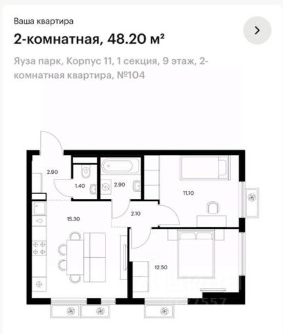 Арт. 92673702. Чистовая отделка! Вашему вниманию предлагается 2-х комнатная квартира в современном жилом комплексе "Яуза парк", корпус 11, расположенном в городе Мытищи Московской области всего в 4 км от МКАД по Ярославскому шоссе. Срок сдачи: 4-й квартал 2027 года. В настоящий момент ведется монтаж верхних этажей (см. фото). 24-этажный современный монолитный дом комфорт класса, 9-ый этаж. Квартира с комфортной продуманной планировкой. Общая площадь: 48,2 кв.м., изолированные комнаты: 12,5 и 11,1 кв.м., кухня-гостиная 15,3 кв.м., санузел раздельный. Чистовая отделка от застройщика, Вам останется купить только мебель! Жилой комплекс "Яуза парк" станет отличным местом для Вашего комфортного проживания! Проект включает 20 домов разной этажности с благоустроенными дворами-парками. Собственная инфраструктура, на территории строится школа и несколько детских садов, подземный паркинг. На перых этажах будут распологаться магазины, кафе, салоны красоты, пункты выдачи маркетплейсов, аптеки и многое другое.Так же на территории ЖК появится благоустроенная набережная реки Яузы и пешеходный бульвар для прогулок. Ведётся реставрация водонапорной башни ХIХ века, вокруг которой будет создано общественное пространство для отдыха жителей квартала. Отлиная транспортная доступность! Всего в пяти минутах пешком расположена ж/д станция Мытищи, быстрый и удобный выезд на автомобиле на Ярослаское шоссе. Продажа по переуступке от физического лица. Звоните, будем рады ответить на Ваши вопросы!
