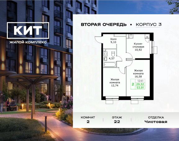 Продаётся 2-к квартира 48.35 кв.м. с чистовой отделкой в ЖК "КИТ2" на 22-м этаже 25 этажного дома.Жилой комплекс "Кит 2" спроектирован в урбанистической концепции "Город в Городе". Объект бизнес-класса предлагает рациональный подход к набору опций, необходимых для гармоничной жизни. Проект представляет собой два корпуса, которые образуют единую приватную территорию. Ее доминантой является двор с красивым ландшафтным дизайном и различными зонами, ориентированными на интересы жителей разного возраста. При создании пространства в приоритет ставился комфорт жителей. В шаговой доступности находятся: торговый центр, рестораны, кинотеатры, спортивный зал, образовательные учреждения и множество других объектов в сфере услуг. Преимущества проекта: - 3 корпуса для приватной жизни - Видовые характеристики (просматриваются Москва - Сити и Останкинская телебашня) - Широкая квартирография по всем типам квартир - Увеличенное остекление - 3 варианта отделки: БОРДО, СТОКГОЛЬМ, ОСЛО - Богатая развлекательная инфраструктура - Высокий уровень безопасности территории Расположение комплекса: - 2,2 км до Волковского шоссе - 2,8 км до Ярославского шоссе - 5,7 км до МКАД - 5 минут пешком до ж/д станции "Мытищи" и Автовокзала - 18 минут до станции метро "Комсомольская" - 30 минут до станции метро "Медведково"
