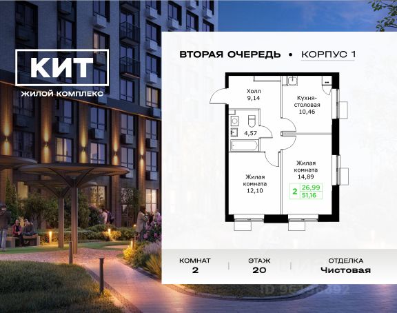 Дом сдан. Выдаем ключи! Продаётся 2-к квартира 54.7 кв.м. без отделки в ЖК "КИТ" на 6-м этаже 25 этажного дома. Жилой комплекс "Кит" спроектирован в урбанистической концепции "Город в Городе". Объект бизнес-класса предлагает рациональный подход к набору опций, необходимых для гармоничной жизни. Проект представляет собой два корпуса, которые образуют единую приватную территорию. Ее доминантой является двор с красивым ландшафтным дизайном и различными зонами, ориентированными на интересы жителей разного возраста. При создании пространства в приоритет ставился комфорт жителей. В шаговой доступности находятся торговый центр, рестораны, кинотеатры, спортивный зал, образовательные учреждения и много других сфер услуг. Преимущества проекта: - Видовые характеристики (просматриваются Москва - Сити и Останкинская телебашня) - Широкая квартирография по всем типам квартир - Увеличенное остекление - 3 варианта отделки: без отделки, white box или чистовая отделка в скандинавском и итальянском стилях - Школа и детский сад рядом - Богатая развлекательная инфраструктура - Высокий уровень безопасности территории Расположение комплекса: - 5 минут пешком до ж/д "Мытищи" и автовокзала: - 19 минут до станции м. "Комсомольская" - 30 минут до станции м. "Медведково" - 2,2 км до Волковского шоссе - 2,8 км до Ярославского шоссе - 5,7 км до МКАД