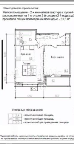 Продаётся 2-комнатная квартира в строящемся доме (Корпус 1), срок сдачи: IV-кв. 2025, общей площадью 49.5 кв.м., на 3 этаже. Многоквартирный жилой дом со встроенно-пристроенными нежилыми помещениями и автостоянкой