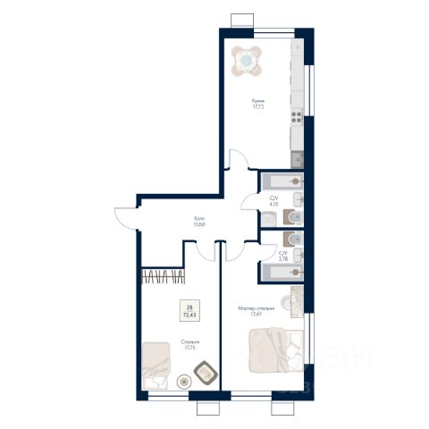 Санузел раздельный, на пол уложена керамогранитная плитка хорошего качества, стены в керамической плитке. В сантехническом шкафу туалета выполнена разводка горячей и холодный воды с помощью регулирующих коллекторов FAR, установлен бойлер для горячей воды (на случай её отключения), унитаз с функцией биде и отдельным смесителем. Полотенцесушитель работает от центрального водоснабжения, активная система вентиляции, чугунная ванная, зеркало с подсветкой, столешница из керамической плитки, полки из алюминия (не ржавеют).