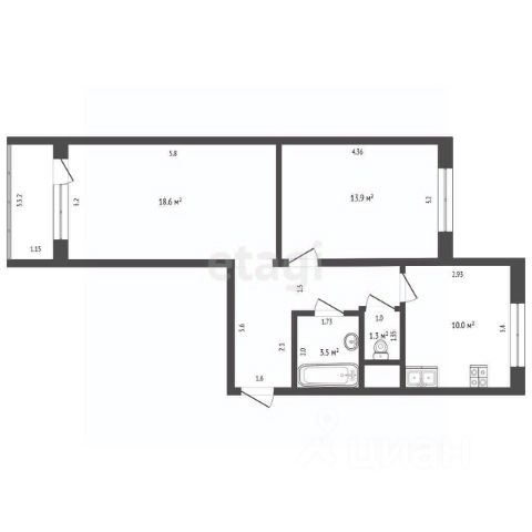 Жилая площадь 34 метров. Кухня 10 метров, комнаты 19 метров и 15 метра. Санузел раздельный, Лоджия 3 метра.