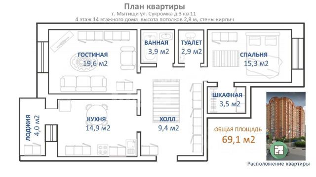 Функциональная планировка: 2 изолированные комнаты, каждая из которых спроектирована с учетом максимального комфорта и приватности. Уютная мастер-спальня 15,3 кв.м с гардеробной 3,5 кв.м ваш личный уголок релаксации. Вместительная гостиная 19,6 кв.м. Просторная кухня 12,5 кв.м совмещена с гостиной 14,9 кв.м оборудована всей необходимой мебелью, Просторный корридор 10 кв.м с модульной мебелью для удобного хранения вещей. Просторный холл 9.4 кв.м. Раздельный санузел.