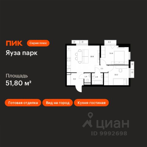 Продаётся 2-комн. квартира площадью 51,3 кв.м на 10 этаже 24 этажного дома (Корпус 7, Секция 1) проекта ПИК Яуза парк. Светлый просторный подъезд на уровне земли, функциональная планировка, большие окна, c отделкой. Жилой квартал "Яуза парк" возводится в Мытищах, в 5 минутах ходьбы от одноимённой ж/д станции. Проект включает 20 домов разной этажности с благоустроенными дворами-парками. Сейчас в квартале началось строительство новых корпусов 7-12. Это отличная возможность купить квартиру по стартовой цене. Индивидуальный дизайн фасадов разработали архитектурные бюро KATARSIS и RHIZOME. Вблизи жилого квартала появятся шумопоглощающие экраны, позволяющие забыть о том, что неподалёку находятся железнодорожные пути. На первых этажах домов откроются магазины, кафе, салоны красоты и другие полезные сервисы. Рядом есть школы и детские сады, магазины и ТРЦ "Красный кит". На территории проекта появится благоустроенная набережная реки Яузы и пешеходный бульвар для прогулок всей семьёй. Водонапорную башню XIX века, расположенную на территории "Яуза парка", мы реставрируем и создадим вокруг неё общественное пространство для отдыха жителей квартала. Для прогулок отлично подойдёт Мытищинский центральный парк культуры и отдыха, расположенный в 10 минутах ходьбы, и Лосиный остров — в 24 минутах. Дорога на автомобиле до Ярославского шоссе займёт не более 3 минут, до МКАД — 10 минут. Артикул 995992 (Застройщик ООО "Специализированный "НМ-Консалт")