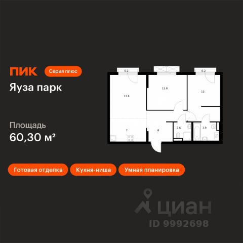 Продаётся 2-комн. квартира площадью 59 кв.м на 7 этаже 15 этажного дома (Корпус 13, Секция 1) проекта ПИК Яуза парк. Светлый просторный подъезд на уровне земли, функциональная планировка, большие окна, c отделкой. Жилой квартал "Яуза парк" возводится в Мытищах, в 5 минутах ходьбы от одноимённой ж/д станции. Проект включает 20 домов разной этажности с благоустроенными дворами-парками. Сейчас в квартале началось строительство новых корпусов 7-12. Это отличная возможность купить квартиру по стартовой цене. Индивидуальный дизайн фасадов разработали архитектурные бюро KATARSIS и RHIZOME. Вблизи жилого квартала появятся шумопоглощающие экраны, позволяющие забыть о том, что неподалёку находятся железнодорожные пути. На первых этажах домов откроются магазины, кафе, салоны красоты и другие полезные сервисы. Рядом есть школы и детские сады, магазины и ТРЦ "Красный кит". На территории проекта появится благоустроенная набережная реки Яузы и пешеходный бульвар для прогулок всей семьёй. Водонапорную башню XIX века, расположенную на территории "Яуза парка", мы реставрируем и создадим вокруг неё общественное пространство для отдыха жителей квартала. Для прогулок отлично подойдёт Мытищинский центральный парк культуры и отдыха, расположенный в 10 минутах ходьбы, и Лосиный остров — в 24 минутах. Дорога на автомобиле до Ярославского шоссе займёт не более 3 минут, до МКАД — 10 минут. Артикул 1057478 (Застройщик ООО "Специализированный "НМ-Консалт")