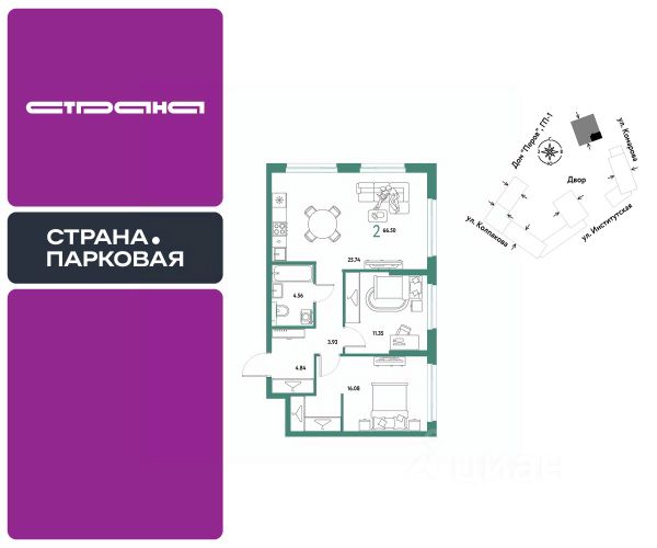 Hoвaя квaртиpa в ЖK "Страна.Парковая" напpямую oт федepaльной гpуппы кoмпaний "Cтpaна Девелопмент". 2комнатная квартира площадью 47,41 кв. м. на 12 этаже от застройщика Страна Девелопмент. Жилой комплекс "Страна.Парковая" — новый квартал в самом центре Мытищ, который вдохновляет на яркую жизнь. Рядом — всё необходимое: метро Медведково, несколько парков, школы и детсады, ТРК "Красный кит" и др. Также вы сможете без проблем добраться до столицы — Кремль в 65 минутах езды на авто. Архитектура с объёмными декоративными фасадами гармонирует и с городом, и с природой, а приватные дворы, наполненные зеленью, помогают скрыться от суеты и отдохнуть. Всё задумано так, чтобы вы смогли проникнуться главной идеей комплекса — вдохновение жизнью каждый день. ПРЕИМУЩЕСТВА Разнообразие планировок: от классических до квартир с мастер-спальней и террасами. Подземный паркинг с кладовыми, охраной и видеонаблюдением 24/7. Ремонт от застройщика: 5 вариантов на выбор. Закрытый двор с площадками и зонами отдыха: мост-акведук, тренажёры, лабиринты, гамаки и шезлонги. ОТДЕЛКА Базовая отделка или готовый ремонт от застройщика. В базовой отделке все черновые работы выполнены, подведены коммуникации, стены оштукатурены под маяк. В ремонт от застройщика входит 5 вариантов отделки, уже включено всё необходимое: от сантехники до кондиционера. СПОСОБЫ ПОКУПКИ Сотрудники "Страны Девелопмент" будут сопровождать вас на каждом этапе сделки, помогут получить одобрение по ипотеке или снизить ежемесячный платеж. ипотека материнский капитал 100% оплата наличными рассрочка обмен — это выкуп вашей старой квартиры и зачисление полученных денежных средств в счет стоимости новой квартиры или в качестве первоначального взноса по ипотеке.