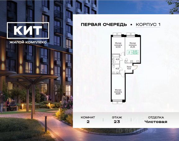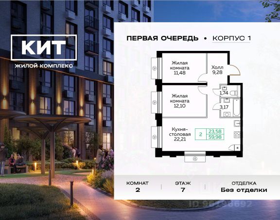 Продаётся 2-комн. квартира площадью 53,5 кв.м на 12 этаже 25 этажного дома (Корпус 1.4, Секция 1) проекта ПИК Ярославский квартал. Светлый просторный подъезд на уровне земли, функциональная планировка, большие окна, c отделкой. Проект "Ярославский квартал" возводится в Мытищах, в 6 км от МКАД. Жилой квартал, состоящий из 8 корпусов, строится рядом с Ярославским шоссе и имеет удобный заезд с крупной автомагистрали. На территории проекта появится школа, детский сад и пешеходный бульвар. Индивидуальные дизайны фасадов для "Ярославского квартала" разработало петербургское архитектурное бюро RHIZOME. В их портфолио вошли работы для Московского музея современного искусства, ГЦСИ, Манифеста 10 и ЦВЗ Манеж. За 7 минут можно дойти пешком до ближайшей автобусной остановки. Столько же займёт дорога до "Лосиного острова" - облагороженного парка с разными активностями для всей семьи, благоустроенными зонами для отдыха, местами для прогулок и пробежек на свежем воздухе. Доехать на автомобиле до Ярославского шоссе получится за 3 минуты, до станции "Мытищи" - за 9 минут, до МКАД - за 15 минут. Артикул 911459 (Застройщик ООО "Специализированный "ГЕОПАРК")