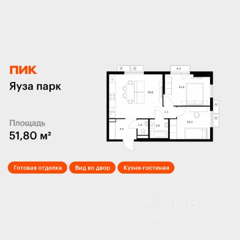Продаётся 2-комн. квартира площадью 51,1 кв.м на 7 этаже 24 этажного дома (Корпус 14, Секция 1) проекта ПИК Яуза парк. Светлый просторный подъезд на уровне земли, функциональная планировка, большие окна, c отделкой. Жилой квартал "Яуза парк" возводится в Мытищах, в 5 минутах ходьбы от одноимённой ж/д станции. Проект включает 20 домов разной этажности с благоустроенными дворами-парками. Сейчас в квартале началось строительство новых корпусов 7-12. Это отличная возможность купить квартиру по стартовой цене. Вблизи жилого квартала появятся шумопоглощающие экраны, позволяющие забыть о том, что неподалёку находятся железнодорожные пути. На первых этажах домов откроются магазины, кафе, салоны красоты и другие полезные сервисы. Рядом есть школы и детские сады, магазины и ТРЦ "Красный кит". На территории проекта появится благоустроенная набережная реки Яузы и пешеходный бульвар для прогулок всей семьёй. Водонапорную башню XIX века, расположенную на территории "Яуза парка", мы реставрируем и создадим вокруг неё общественное пространство для отдыха жителей квартала. Для прогулок отлично подойдёт Мытищинский центральный парк культуры и отдыха, расположенный в 10 минутах ходьбы, и Лосиный остров — в 24 минутах. Дорога на автомобиле до Ярославского шоссе займёт не более 3 минут, до МКАД — 10 минут. Артикул 1056641 (Застройщик ООО "Специализированный "НМ-Консалт")