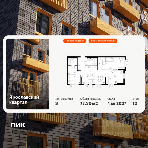 Продаётся 3-комн. квартира площадью 79,6 кв.м на 12 этаже 24 этажного дома (Корпус 6, Секция 1) проекта ПИК Яуза парк. Светлый просторный подъезд на уровне земли, функциональная планировка, большие окна, c отделкой. Жилой квартал "Яуза парк" возводится в Мытищах, в 5 минутах ходьбы от одноимённой ж/д станции. Проект включает 20 домов разной этажности с благоустроенными дворами-парками. Сейчас в квартале началось строительство новых корпусов 7-12. Это отличная возможность купить квартиру по стартовой цене. Индивидуальный дизайн фасадов разработали архитектурные бюро KATARSIS и RHIZOME. Вблизи жилого квартала появятся шумопоглощающие экраны, позволяющие забыть о том, что неподалёку находятся железнодорожные пути. На первых этажах домов откроются магазины, кафе, салоны красоты и другие полезные сервисы. Рядом есть школы и детские сады, магазины и ТРЦ "Красный кит". На территории проекта появится благоустроенная набережная реки Яузы и пешеходный бульвар для прогулок всей семьёй. Водонапорную башню XIX века, расположенную на территории "Яуза парка", мы реставрируем и создадим вокруг неё общественное пространство для отдыха жителей квартала. Для прогулок отлично подойдёт Мытищинский центральный парк культуры и отдыха, расположенный в 10 минутах ходьбы, и Лосиный остров — в 24 минутах. Дорога на автомобиле до Ярославского шоссе займёт не более 3 минут, до МКАД — 10 минут. Артикул 940818 (Застройщик ООО "Специализированный "НМ-Консалт")