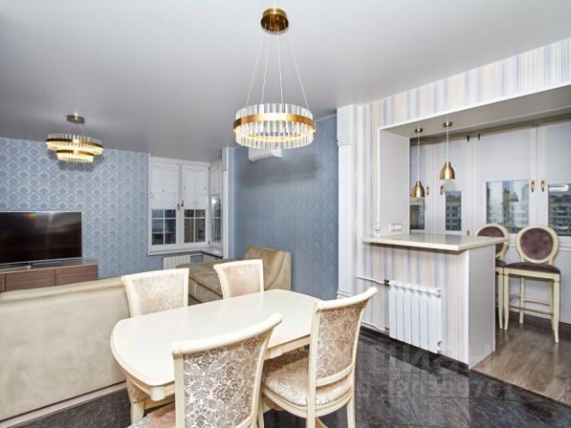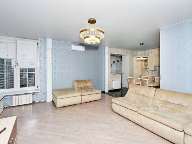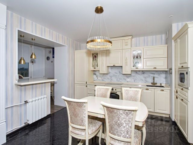 В кухне итальянский гарнитур со встроенной техникой, в том числе ППМ, варочной панелью, холодильником, кофе-машиной, духовкой с функцией СВЧ, вытяжкой. Столешница и кухонный фартук из кварцевого агломерата. Отличные панорамные виды в сторону Москвы из гостиной, кухни и детской спальни. Из родительской спальни вид на детский сад.