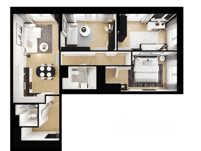 Квартира настолько большая, что места в ней хватит всем членам большой и дружной семьи.