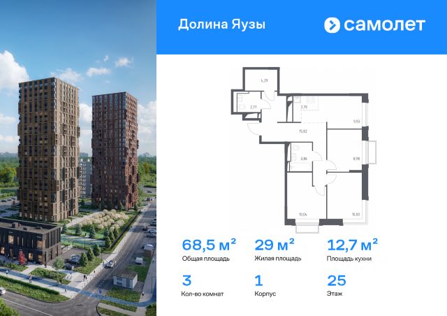 Строим кварталы для жизни с заботой о будущем. Предлагается 3-комнатная квартира комфорт-класса 61,67 кв.м в корпусе 3 на 7 этаже, в ЖК "Долина Яузы" Квартира с чистовой отделкой. Доступность дополнительных опций уточняйте у застройщика. Приобрести квартиру возможно по специальным акциям от застройщика, с текущими условиями акций можно ознакомиться в блоке "Акций". Цена динамическая и может отличаться, уточняйте актуальность у застройщика. Жилой комплекс комфорт-класса "Долина Яузы" расположен на северо-востоке Московской области, в 200 м от МКАД. До ж/д станции Перловская или набережной реки Яуза можно дойти за 10 минут. В шаговой доступности находятся детские сады, школы, стоматология и поликлиника. Есть супермаркеты и кофейни, детские и спортивные площадки, зоны отдыха под навесом. У каждого дома будет собственный двор-сад, где посадят плодовые и вечнозеленые деревья и кустарники. Территория около жилого комплекса закрыта от машин и посторонних и круглосуточно охраняется. В жилом комплексе "Долина Яузы" большой выбор квартир: от однокомнатных до трехкомнатных. Квартиры сдаются с готовой отделкой или без нее. Продам 3-комнатную квартиру в ипотеку в микрорайоне Перловка в городе Мытищи.