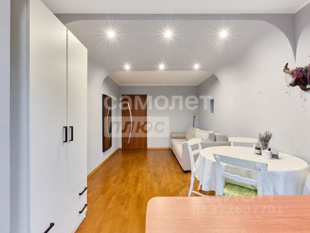 В квартире произведена узаконенная перепланировка, лоджия утеплена и разделена на 2 независимые части. Одна часть присоединена к гостиной и образует зону столовой, а вторая стала продолжением кухни, но, при необходимости, отделяется дверью.