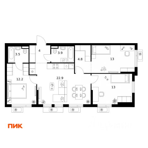 Строим кварталы для жизни с заботой о будущем. Предлагается 3-комнатная квартира комфорт-класса площадью 76,7 кв.м в корпусе 4.2 на 5-м этаже, в жилом комплексе "Мытищи Парк". Квартиры комплекса — на выбор: могут быть как с отделкой, так и без. В случае с готовой отделкой уложат напольное покрытие, выровняют стены и поклеят обои в нейтральных тонах, установят потолки, выполнят разводку коммуникаций и подключат сантехнику. Вам также не придётся после заселения менять окна, межкомнатные и входные двери — их качество будет на высоте. Помимо базовой отделки, вы можете дополнительно выбрать улучшенную версию. В ней используются износостойкие материалы, ударопрочные плинтуса, ламинат с фаской — все для долговечного использования. Приобрести квартиру возможно по специальным акциям от застройщика, с текущими условиями акций можно ознакомиться в блоке "Акций". Цена динамическая и может отличаться, уточняйте актуальность у застройщика. ЖК "Мытищи Парк" — это надежные и долговечные монолитные корпуса. При проектировании домов и территории застройщик учел потребности жильцов всех возрастов — молодых пар, семей с детьми и пожилых людей. ЖК "Мытищи Парк" расположен в Московской области и с двух сторон окружен Пироговским лесопарком.