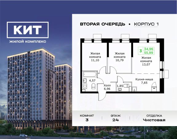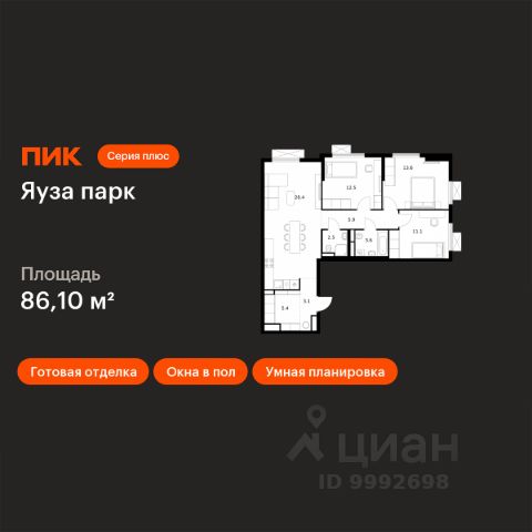 Продаётся 3-комн. квартира площадью 83,8 кв.м на 17 этаже 24 этажного дома (Корпус 14, Секция 1) проекта ПИК Яуза парк. Светлый просторный подъезд на уровне земли, функциональная планировка, большие окна, c отделкой. Жилой квартал "Яуза парк" возводится в Мытищах, в 5 минутах ходьбы от одноимённой ж/д станции. Проект включает 20 домов разной этажности с благоустроенными дворами-парками. Сейчас в квартале началось строительство новых корпусов 7-12. Это отличная возможность купить квартиру по стартовой цене. Индивидуальный дизайн фасадов разработали архитектурные бюро KATARSIS и RHIZOME. Вблизи жилого квартала появятся шумопоглощающие экраны, позволяющие забыть о том, что неподалёку находятся железнодорожные пути. На первых этажах домов откроются магазины, кафе, салоны красоты и другие полезные сервисы. Рядом есть школы и детские сады, магазины и ТРЦ "Красный кит". На территории проекта появится благоустроенная набережная реки Яузы и пешеходный бульвар для прогулок всей семьёй. Водонапорную башню XIX века, расположенную на территории "Яуза парка", мы реставрируем и создадим вокруг неё общественное пространство для отдыха жителей квартала. Для прогулок отлично подойдёт Мытищинский центральный парк культуры и отдыха, расположенный в 10 минутах ходьбы, и Лосиный остров — в 24 минутах. Дорога на автомобиле до Ярославского шоссе займёт не более 3 минут, до МКАД — 10 минут. Артикул 1056772 (Застройщик ООО "Специализированный "НМ-Консалт") Продается 3-комнатная квартира от застройщика в Мытищах.