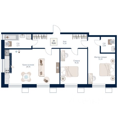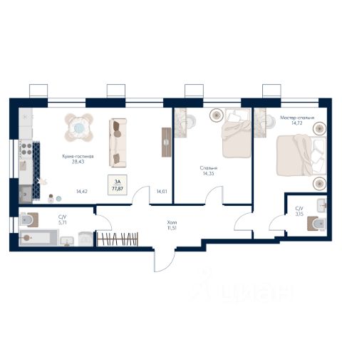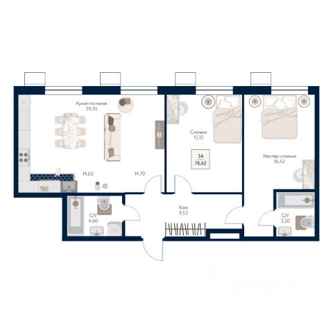 Продаётся 3-комнатная квартира в строящемся доме (Секции 1-5), срок сдачи: III-кв. 2028, общей площадью 83.45 кв.м., на 10 этаже. Новый жилой комплекс "Бархат" от застройщика "СЗ Глобалмытищи" расположен по адресу: г. Мытищи, Ядреевская улица.