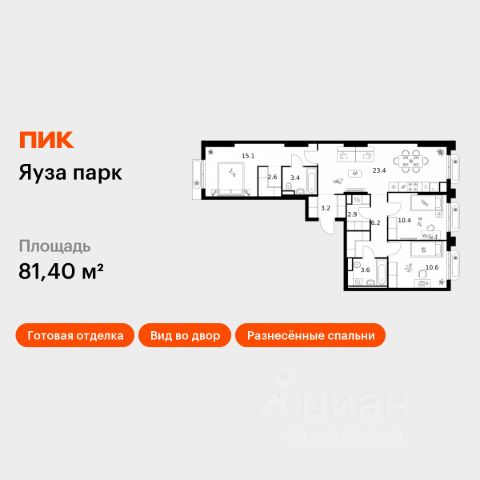 Продаётся 3-комн. квартира площадью 85,3 кв.м на 8 этаже 24 этажного дома (Корпус 12, Секция 1) проекта ПИК Яуза парк. Светлый просторный подъезд на уровне земли, функциональная планировка, большие окна, предчистовая отделка. Жилой квартал "Яуза парк" возводится в Мытищах, в 5 минутах ходьбы от одноимённой ж/д станции. Проект включает 20 домов разной этажности с благоустроенными дворами-парками. Сейчас в квартале началось строительство новых корпусов 7-12. Это отличная возможность купить квартиру по стартовой цене. Вблизи жилого квартала появятся шумопоглощающие экраны, позволяющие забыть о том, что неподалёку находятся железнодорожные пути. На первых этажах домов откроются магазины, кафе, салоны красоты и другие полезные сервисы. Рядом есть школы и детские сады, магазины и ТРЦ "Красный кит". На территории проекта появится благоустроенная набережная реки Яузы и пешеходный бульвар для прогулок всей семьёй. Водонапорную башню XIX века, расположенную на территории "Яуза парка", мы реставрируем и создадим вокруг неё общественное пространство для отдыха жителей квартала. Для прогулок отлично подойдёт Мытищинский центральный парк культуры и отдыха, расположенный в 10 минутах ходьбы, и Лосиный остров — в 24 минутах. Дорога на автомобиле до Ярославского шоссе займёт не более 3 минут, до МКАД — 10 минут. Артикул 1000690 (Застройщик ООО "Специализированный "НМ-Консалт")