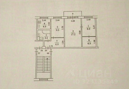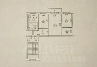 Распашенка . Площадь 89,9 м2 - это именно отапливаемая , без лоджий. Жилая площадь 52,7 м2. Три изолированные комнаты: 17.8м2 +17.3м2 и 17.6 м2, просторная прихожая 17.4м2. Есть выход из кухни 13,5 м2 в одну из комнат, которую можно использовать как гостинную. Перепланировка узаконена.