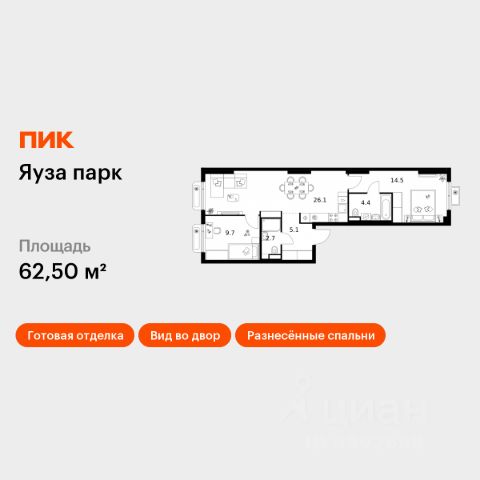 Продаётся 4-комнатная квартира в строящемся доме (Корпус 5), срок сдачи: III-кв. 2027, общей площадью 93.9 кв.м., на 4 этаже. ЖК "Отрадный" это: - презентабельные монолитные дома с красивыми холлами и лифтами класса "люкс"; - комфортные квартиры с отделкой; - отдельно стоящий многоуровневый паркинг; - вся инфраструктура благоустроенного района: детские и спортивные площадки, детские сады, школы, стадион, спорт. школа с бассейном, магазины, торгово-развлекательные центры с кинотеатрами, аптеки, банки, городская клиническая больница, а также рядом находятся национальный парк "Лосиный остров" и аква-парк; - удобное транспортное сообщение: в пешей доступности ж/д станция Мытищи - от неё можно доехать скоростной электричкой до центра Москвы за 18 минут; с расположенного неподалеку автовокзала курсируют автобусы до Пироговского водохранилища, ТРЦ "Июнь" и многих других мест; 10 минут пешком до остановки на Ярославском шоссе, откуда автобусом до м. ВДНХ 15 минут.