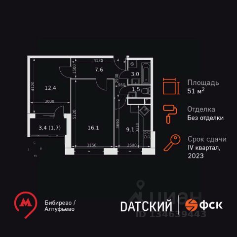 Новый объект! Новый ремонт! В продаже 2-комнатная квартира, общей площадью 53,2 м², без учета лоджии вЖК "Датский квартал", застройщик ФСК.