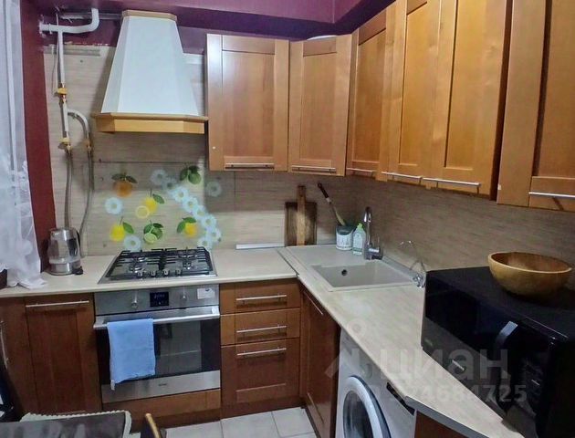 На кухне располагается угловой кухонный гарнитур, выполненный на заказ. Большое количество пространства для хранения, вместительные выдвижные ящики с металлическим каркасом, колонна под встроенный духовой шкаф (Zigmund & Shtain, сенсорный), ниша под холодильник (LIEBHERR), посудомоечная машина, удобная варочная панель нестандартных габаритов (Zigmund & Shtain, сенсорная), монолитная столешница из искусственного камня с интегрированной раковиной, фильтр для воды. Также, на кухне расположена обеденная зона и выход на лоджию, объединяющую два помещения.